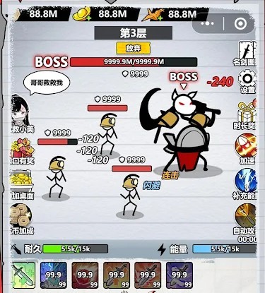 4、打boss还是需要看看自己的实力,如果认为不能完全取胜,玩家可以点击放弃的按钮,