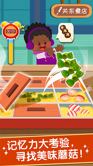 2、欢乐烧烤:为香肠涂上酸甜的番茄酱,为蘑菇加盐和辣椒粉,通过这个过程学习如何调味和烹饪。