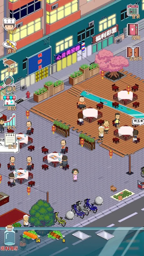 通过点击升级来获得更多色味俱佳的烤品,升级服务员和厨师的等级,满足食客们的口腹之欲。