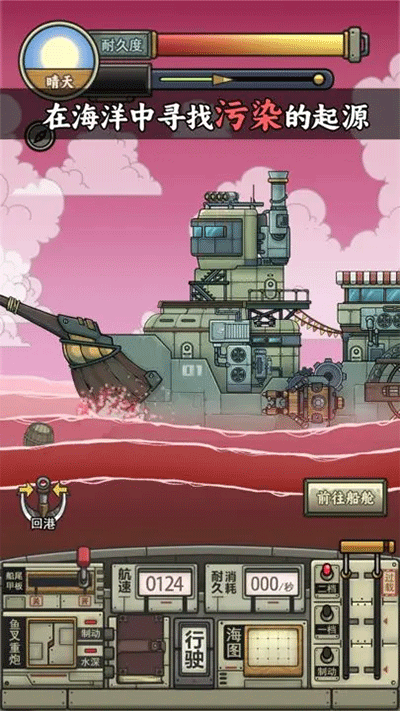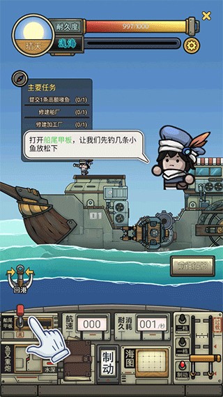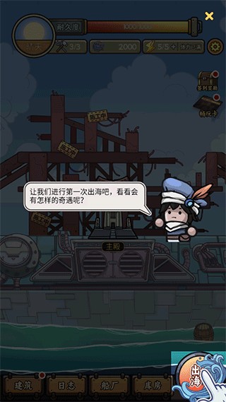 2、玩家每次出海都会遇到不同的挑战与困难,需要在耐久度为0之前返回。