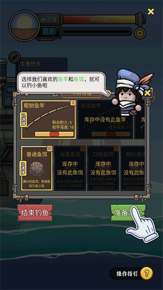 前期基础叉配海藻饵,升级渔船全靠叉鱼,等熟练后刷高级鱼,甲壳叉配高级饵。
