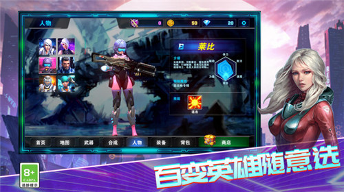 1、玩家可以先选择一款自己心仪的角色,每个角色都有不同的技能属性,掌握角色的优劣势。