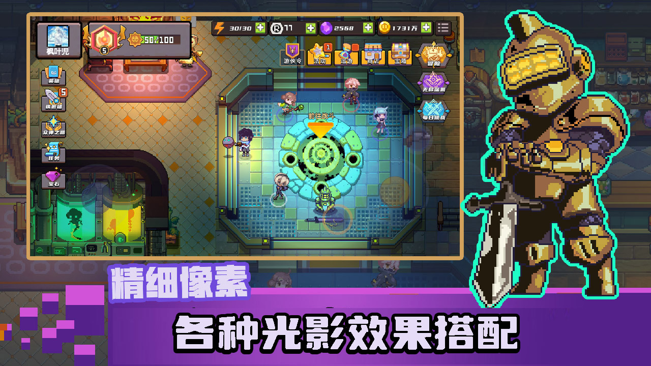 3、像素画风炫酷十足,随机探险新体验,自由选路无序关卡,奇遇连连奖励不断。