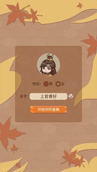 2、选择自己的昵称以及性别,然后开启你的皇朝。