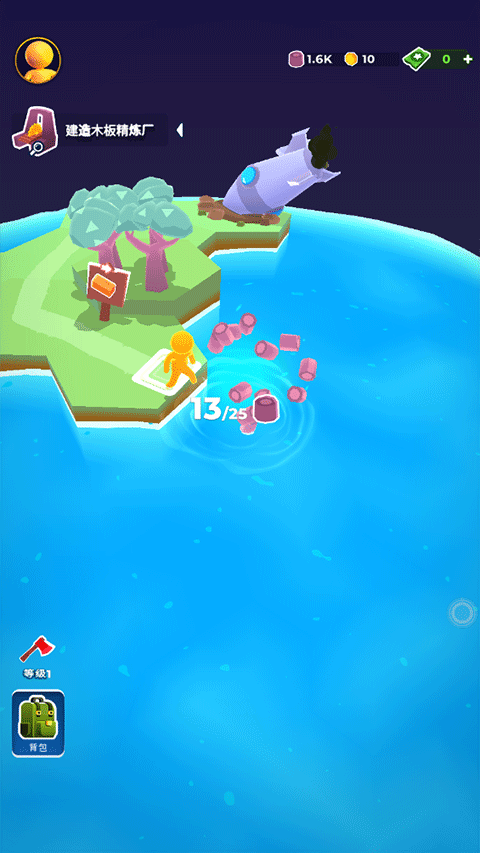 2、将获取的资源丢在空余的地方即可制造出一片新的土地,这样就有更多的木材可以砍了。