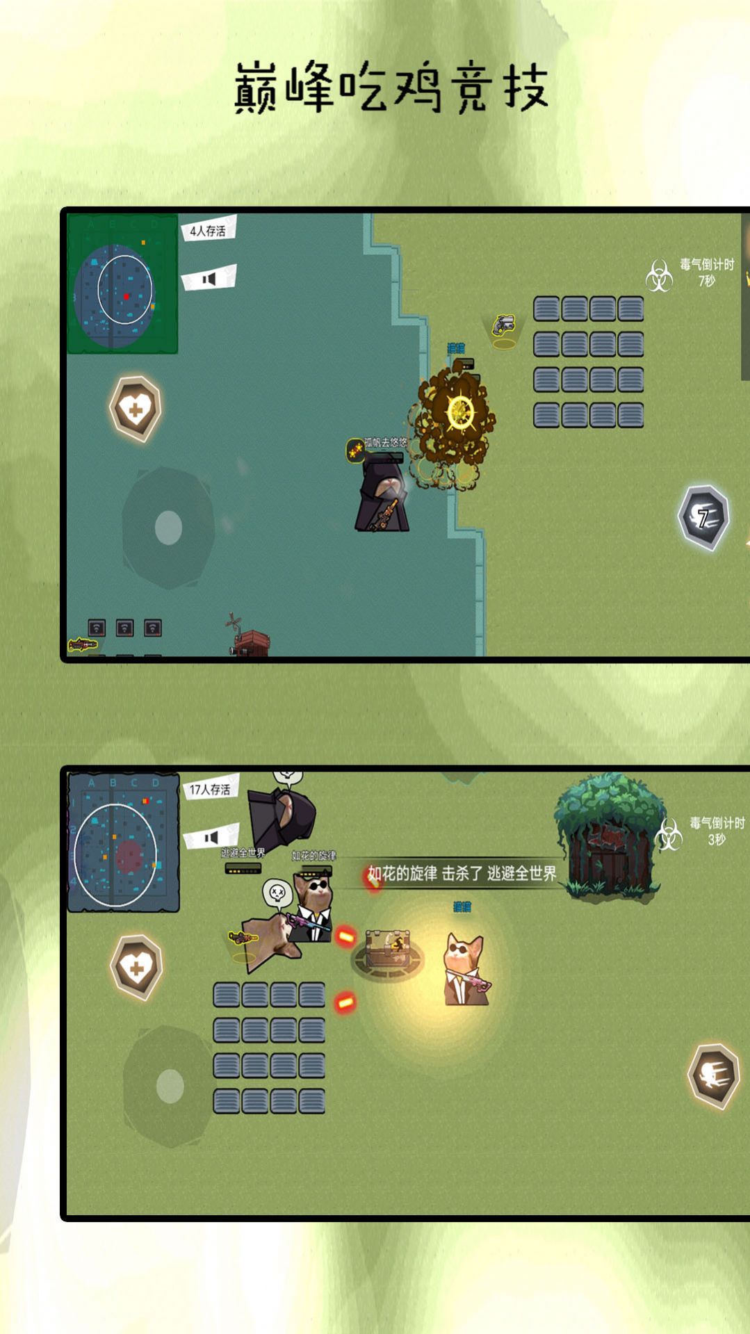 下载巅峰吃鸡竞赛是一款好玩的射击对战手游,可爱的角色可以自由选择,为角色装备不同的武器就可以进行射击啦,击败敌人之后可以获得对方的装备进行补充,提升自己的实力,在吃鸡大战中赢得最后的胜利。