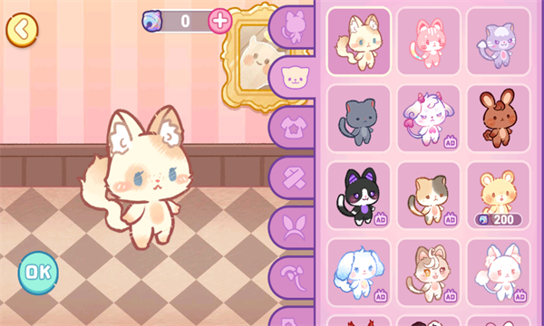 小猫咪就是需要打扮得可可爱爱的!不同皮肤的猫咪以及超过600个散件等着你来搭配!喵~各种风格的衣服裙子、可爱的头饰、精致的鞋子等等,甚至还有翅膀!发挥你的想象力,帮每一只小猫创造出最可爱、最时尚的造型吧。