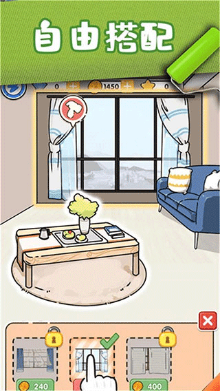 3、顺利通过关卡,收集金币,去商店买你喜欢的,把你的破房子装修成温暖的小房子。