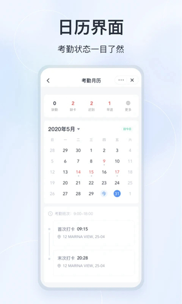 4、支持远程打卡功能,用户可以随时随地进行工作打卡,确保及时完成任务并记录工作时间。