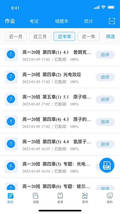 点击底部导航的【批阅】按钮,进入作业列表。