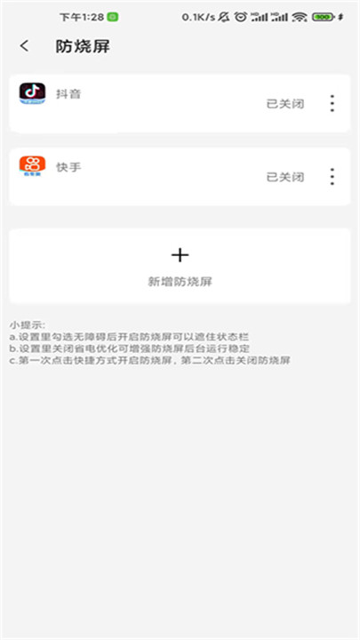 一 用户还可以根据需要手动添加其他应用至防烧屏名单,并为每个应用单独设置不同的悬浮窗,确保在使用这些应用时得到额外保护。此外,您还可以将防烧屏功能设置为桌面快捷方式,便于随时开启和关闭,提高操作的便捷性。