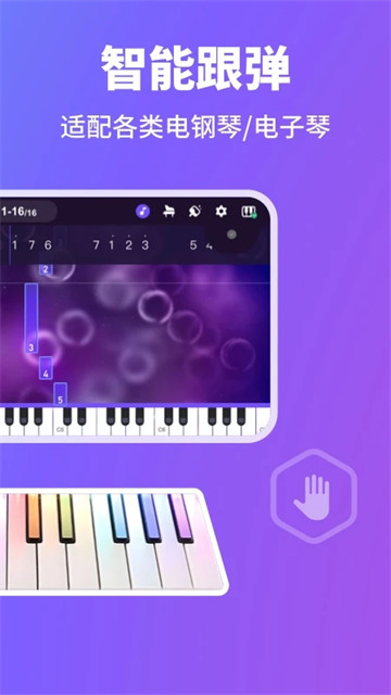 2、会告诉你指法,如何运用十指流畅弹奏,对于小白用户不再是一指禅弹奏。
