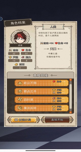 接下来就狂点屏幕,遇到事件就往加属性的选项点,宝箱的东西优先级血量和攻击(看当前情况)如果没有就点加其他属性最高的 然后到精灵王看个广告就过了,你只要是个天使、魔族、龙族、精灵族、人族一般都能过
