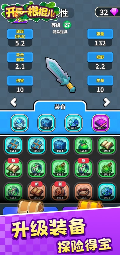 玩家在游戏中还有一定的概率能够或得到一些游戏装备,这些游戏装备能够显著提升玩家的属性面板。能够给玩家的属性带来显著的强化,所以玩家在获得游戏装备后可以给自己的游戏角色来进行装备能够进一步的提升游戏角色的属性从而应对更加困难的关卡。