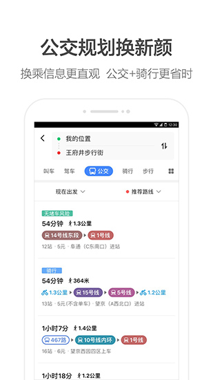 2、公交规划优化:公交查询界面简洁,提供更便捷的线路和实时到站信息。