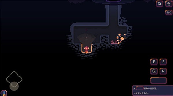 1、按住屏幕左边滑动可以控制角色的移动,按住方向对准墙壁就可以挖矿了