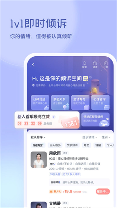 壹心理软件不仅面向需要帮助的用户,还鼓励有志于从事心理咨询的人成为“助人者”。通过平台的“朝阳计划”和心理倾听师报名项目,用户可以参与专业学习和培训,逐步成长为合格的心理咨询师,从而实现职业转型或发展。