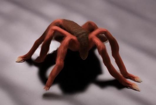 怪物形态:一团不明深色物质构成的变异物体,直径约25cm,覆盖有多层蜘蛛丝织物。 触感柔软,粘性接近蜘蛛丝。
