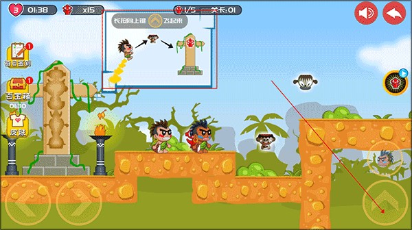 1、下载安装后进入游戏,长按如图所示的键可以让角色飞起来。