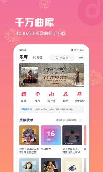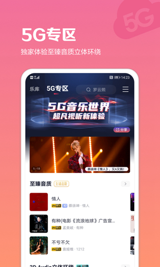 3、5G专区:为5G用户提供极速流畅的音乐体验,支持高清视频音效,带来沉浸式享受。