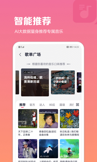2、智能推荐:利用AI大数据为用户推荐个性化歌单,帮助用户发现符合自己口味的音乐。