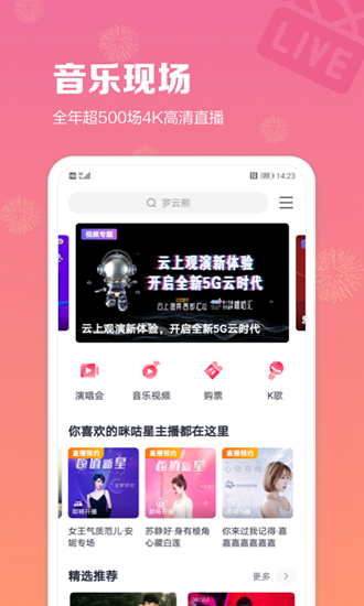 4、全年超500场4K高清直播:覆盖全年500多场音乐演出与活动,提供4K高清直播,享受精彩的音乐现场。