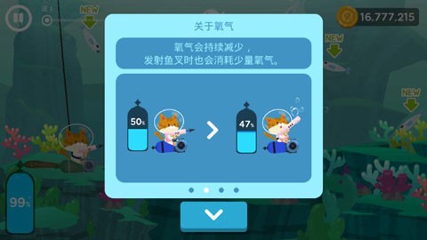 游戏中大家除了要掌握捕鱼的技巧和合理运用各种道具以外,鱼枪、氧气瓶和渔船的养成至关重要。