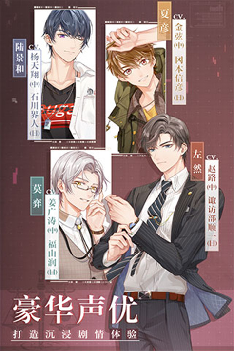 海量剧情文本,特邀一线声优献声:姜广涛、赵路、杨天翔、金弦……阵容豪华,诚意满满,打造最具沉浸感的游戏体验。