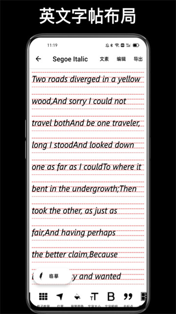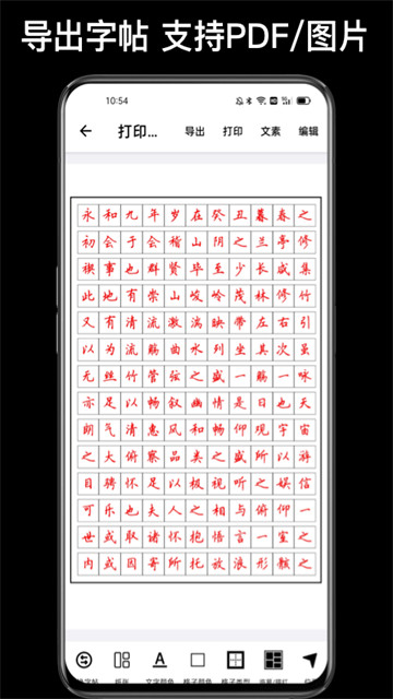 2、用户可以输入自定义文字,快速生成字帖,并支持导出为PDF或图片格式进行打印。