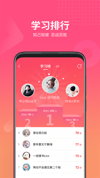 2、学习排行:通过学习排行功能,用户可以了解自己的学习进度,并与其他学员进行对比。