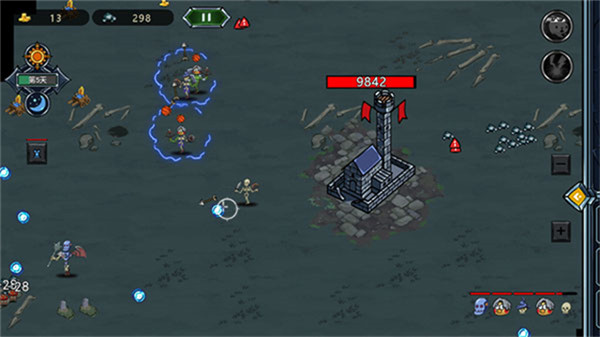 游戏不仅仅依赖玩家的操作能力,还考验了玩家的战略眼光。从亡灵的合成、搭配到防御塔的布置,每一个决策都直接影响战斗的成败。敌人种类繁多且不断变化,特别是巫师等强大敌人的进攻,需要玩家不断调整策略,灵活应对,给玩家带来了高度的挑战性。