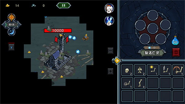 复活后的亡灵会自动守护防御塔,并在敌人接近时主动攻击它们。敌人将不断进攻,你的亡灵需要击败它们来保卫阵地。每当你的亡灵击败敌人后,你将获得各种奖励,包括矿物、黄金、材料和新的身体部件。