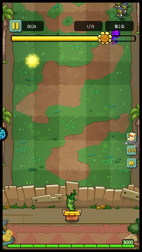 3、在游戏内还可以点击阳光进行收集,收集满了阳光就可以获得新植物,或者升级已有植物。