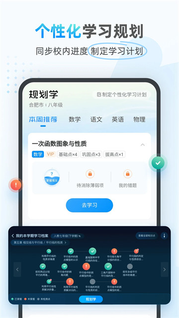 1、本地同步真题、图谱诊断等多种工具为家长提供更全面更高效的教育体验。