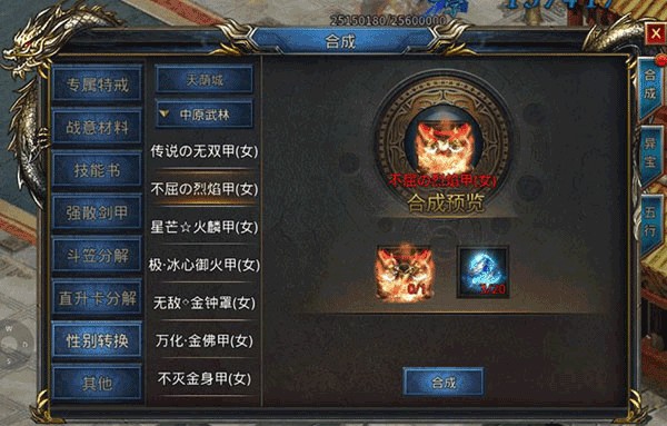 可将装备进行性别转换,将需要转换的装备+进化之石放入合成即可