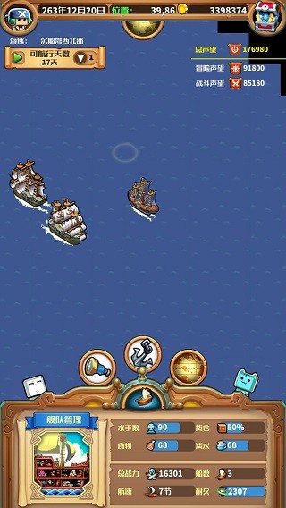 3、提升自身船只的等级以及强化各方面的实力,确保能够抵御各种各样的危机,逐步来扩大自己的航海版图。