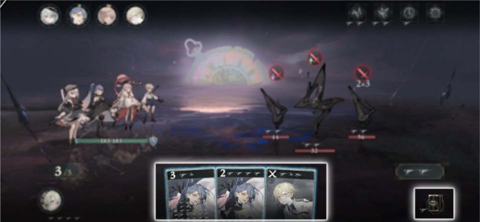 每回合会随机将卡组内的四张卡牌加入手中,大家需要根据其效果与花费的算力来考虑这回合应该按照什么顺序出牌。