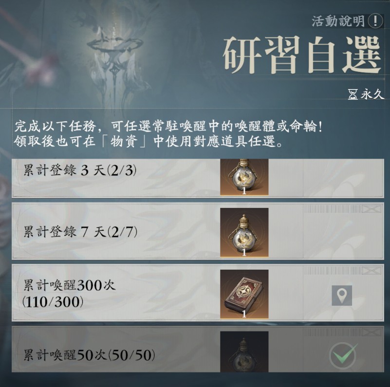累计登录3、7天,累计抽卡50次,都可以获得一次常驻自选ssr角色,这意味着7天过后大家至少拥有3只以上的ssr角色。