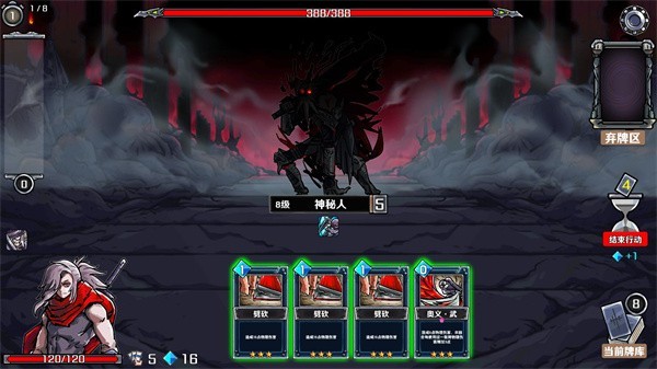 4、有了以上三类牌,其他牌想怎么配就这么配。而且过图奇快,最后boss,我就潜行+放火或者捆绑或者乌鸦吸血,都可以无伤过关。