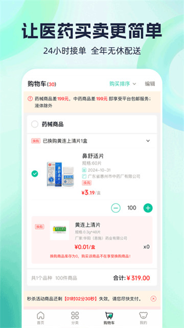 1、将各种各样的药品进行了详细的分类,让用户可以更加便捷的进行采购。