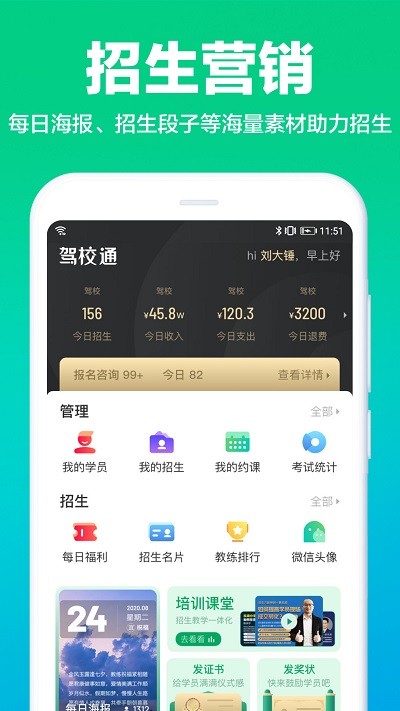 2、招生通:发布招生信息,增加驾校曝光和招生能力。