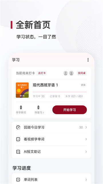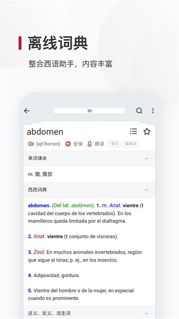 1、可以开始进行单词的记背,让用户能够慢慢的记背许多西班牙语单词。