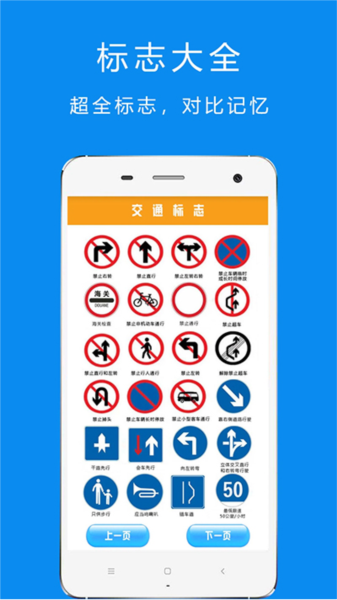 3、超全标志 对比记忆:提供完整的交通标志库,帮助用户通过对比记忆,加深对标志的理解和识别。