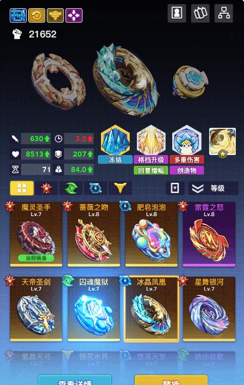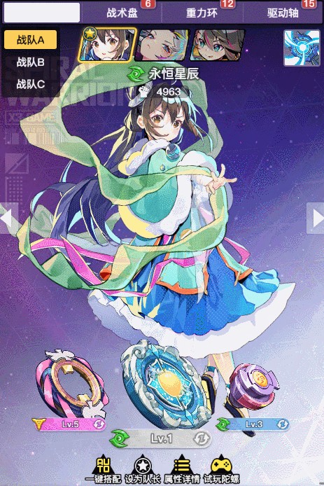 在游戏内的“强化界面”,只需点击配件部位,即可直达装配区。在这里,你可以随心所欲地挑选和搭配各种战术盘、重力环与驱动轴,创造出独一无二的陀螺战士。