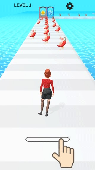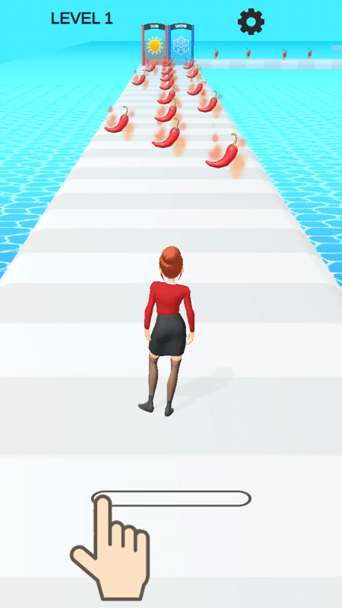 1、打开抖音冰火女孩吃辣椒小游戏,玩家需要操控角色左右移动来收集辣椒、躲避冰淇淋