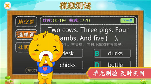 3、每一个单元都会提供中文选词专项测试,用户可以快速了解自己对单元的掌握。