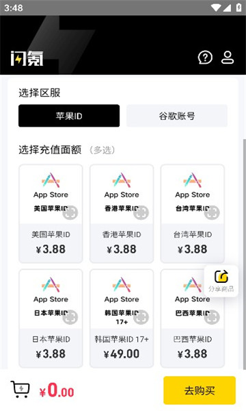 3、这个充值金额是可以多选的,选择好后就可以点击【去购买】