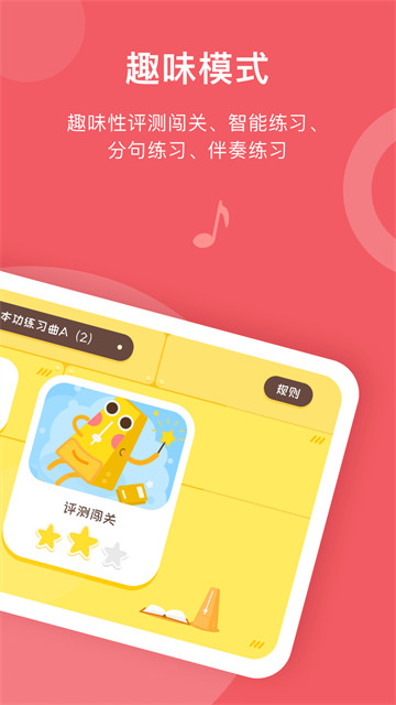 1、多种不同的练习模式,设计了智能练习、分句练习、伴奏练习多种模式。