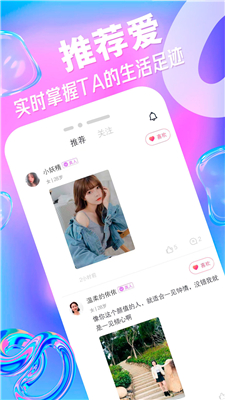 2.随时随地查看附近人的动态,也可以分享生活趣事,了解喜欢的TA动态,增加话题,拉近距离