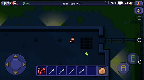 6、在这里,之前做好的绳子就有用处了。用这根绳子从屋顶爬下来。之后,用白天拿到的塑料刀来切割围栏。于是,就通关了。